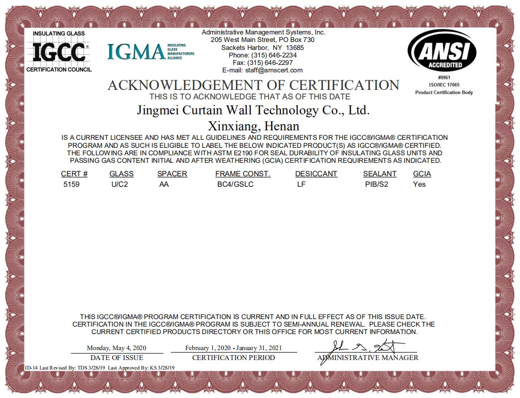 5月8日,aitiyu爱体育官方在线入口下属的静美幕墙技术有限公司中空玻璃产品顺利通过了美国IGCC/IGMA实验室样品认证检测,荣获IGCC/IGMA认证证书,成为目前河南省唯一一家通过美国I…