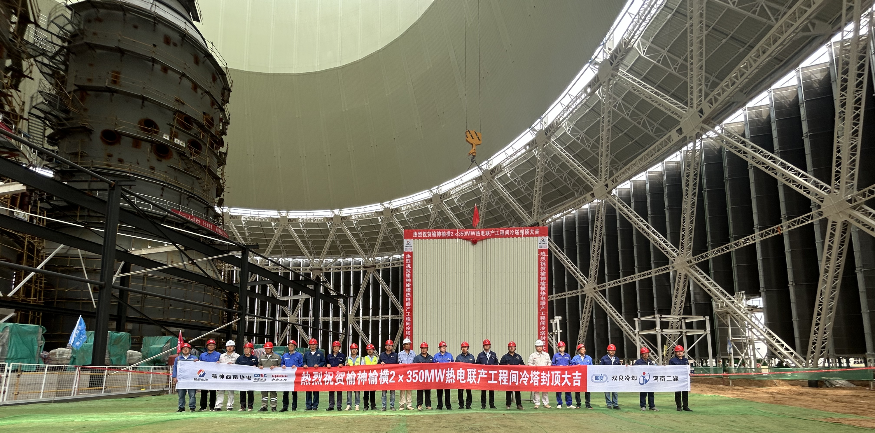 工业设备工程分公司榆能榆神西南热电钢结构间冷塔顺利封顶